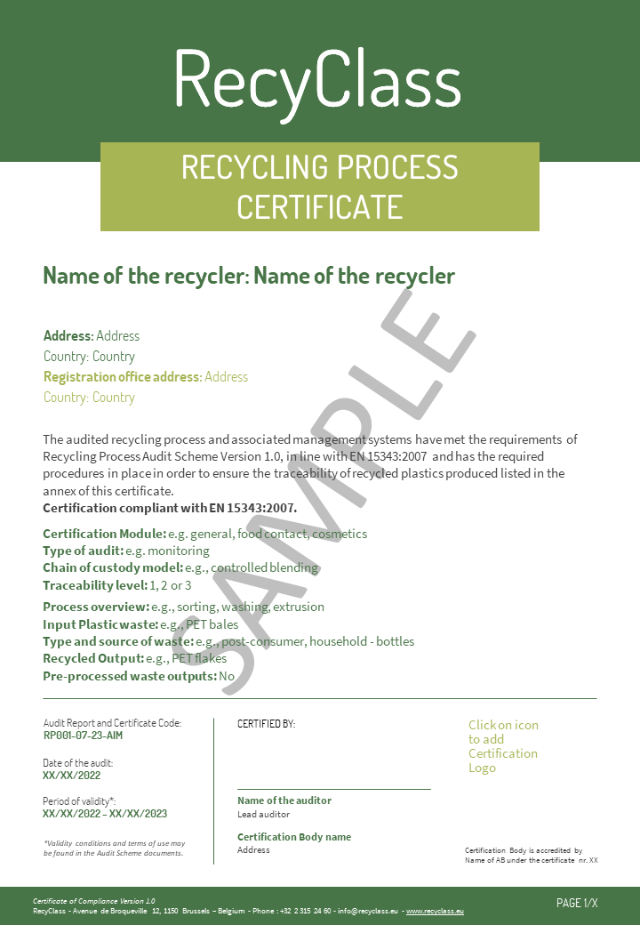 Before starting the process, find the answer to all your questions about the RecyClass Recycling Process Certification below:
